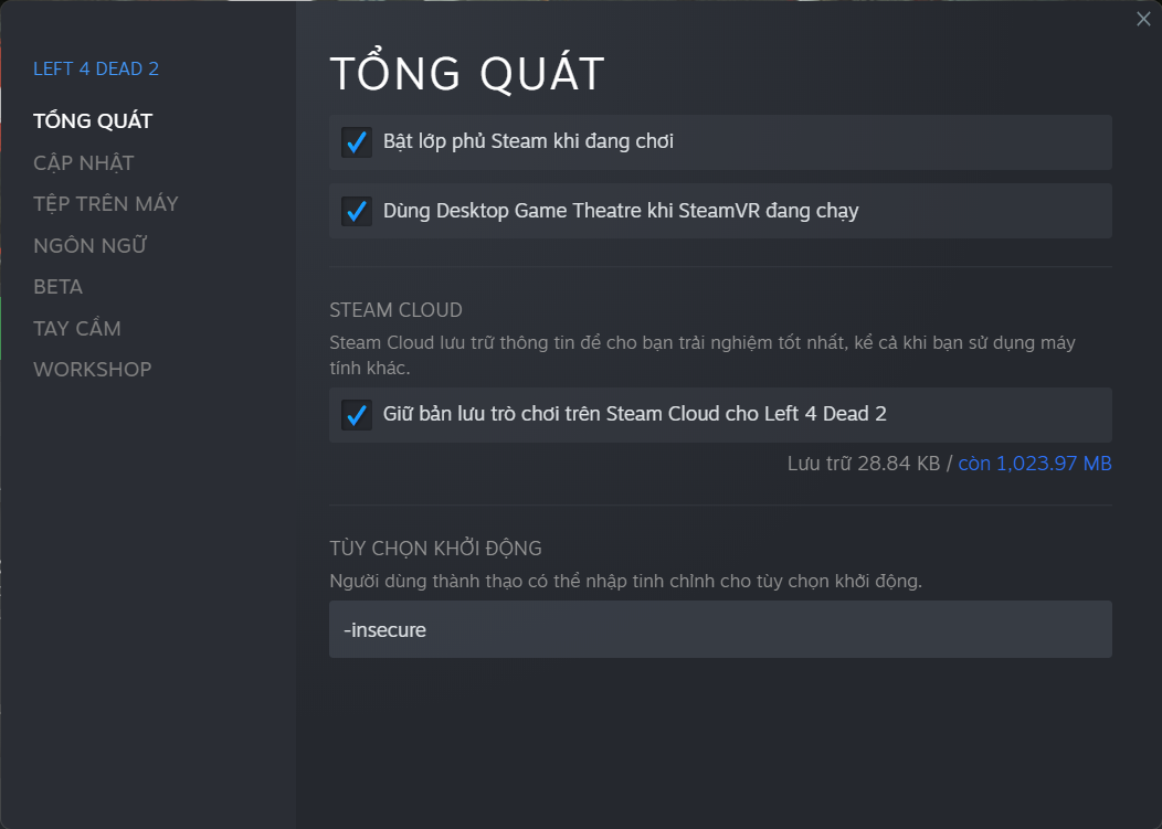 2. Add -insecure to the launch options.